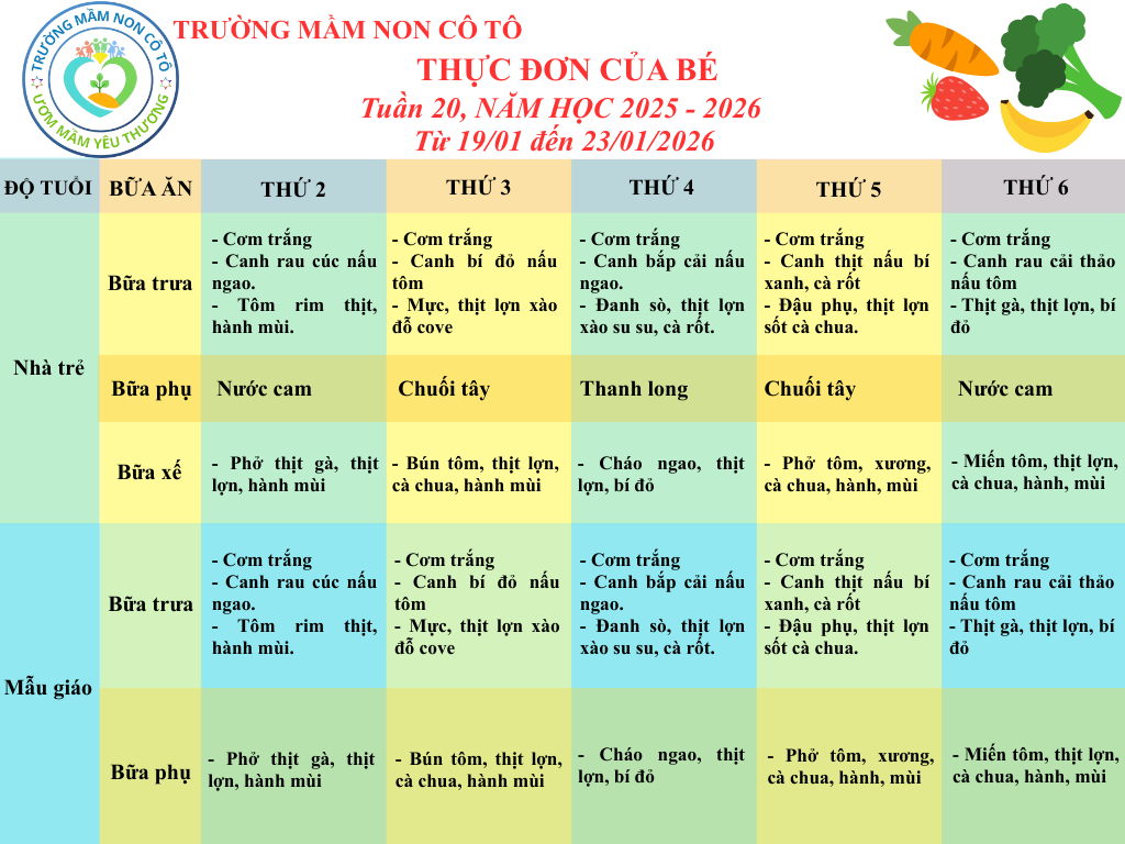 THỰC ĐƠN TUẦN 20 - NĂM HỌC 2025-2026