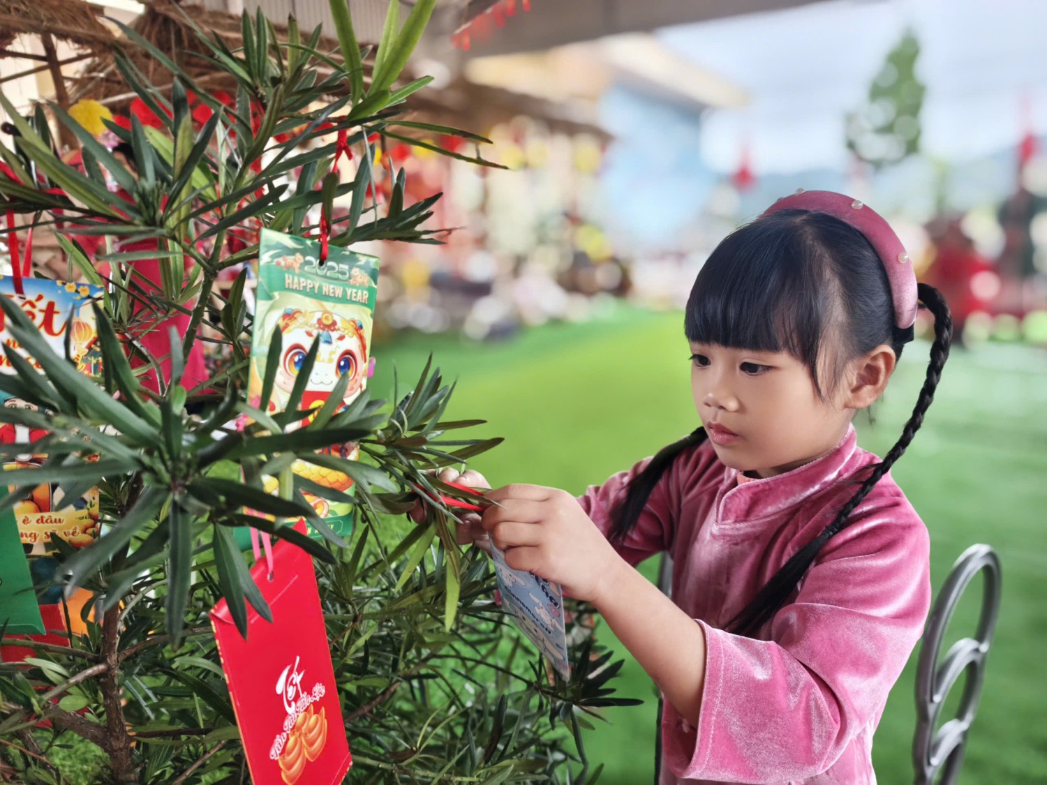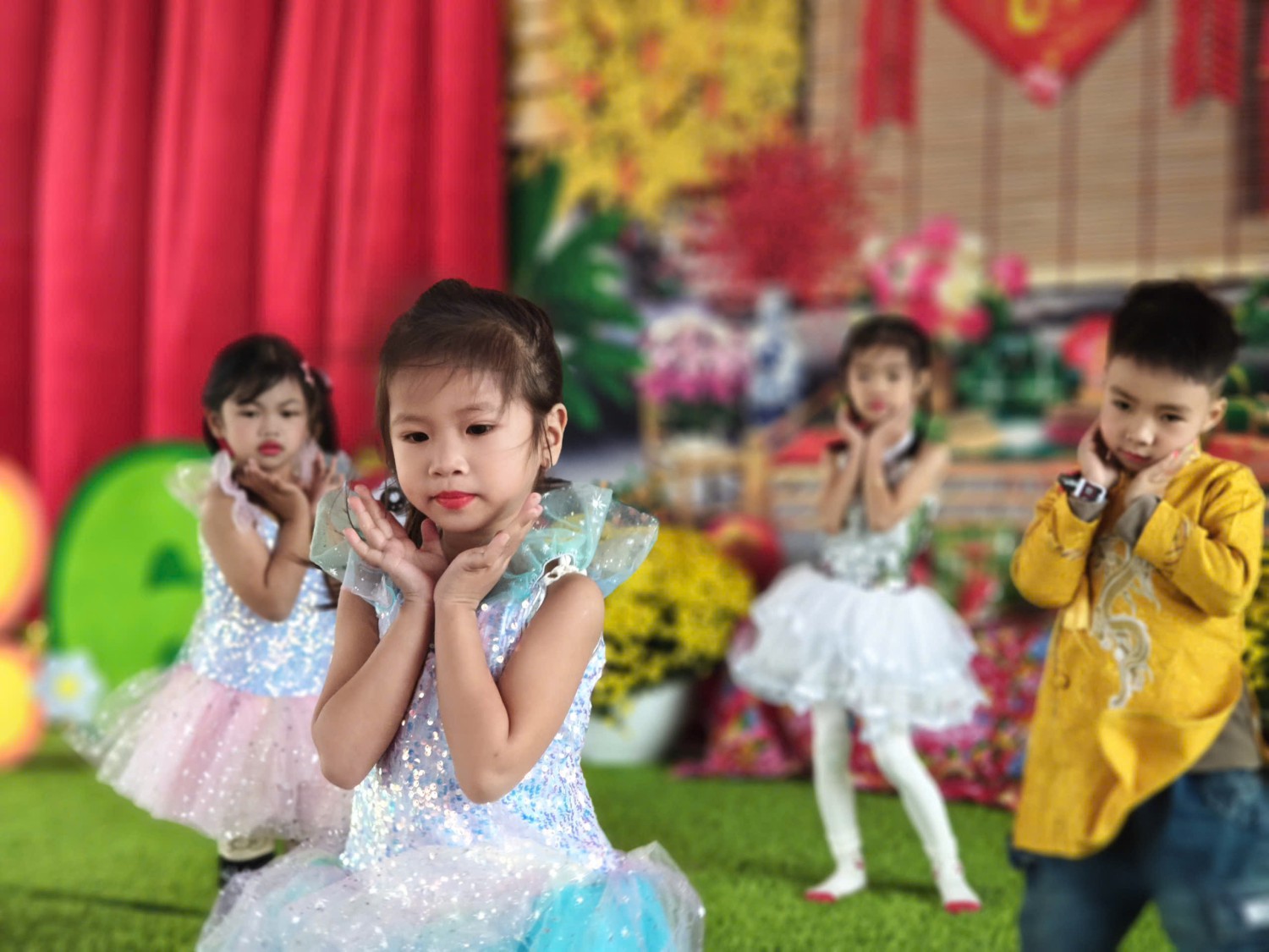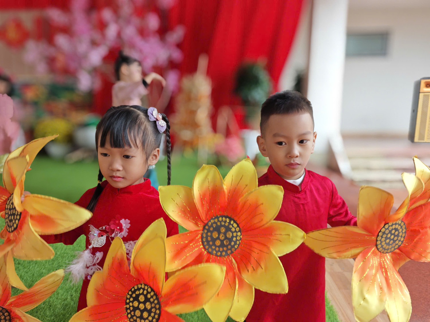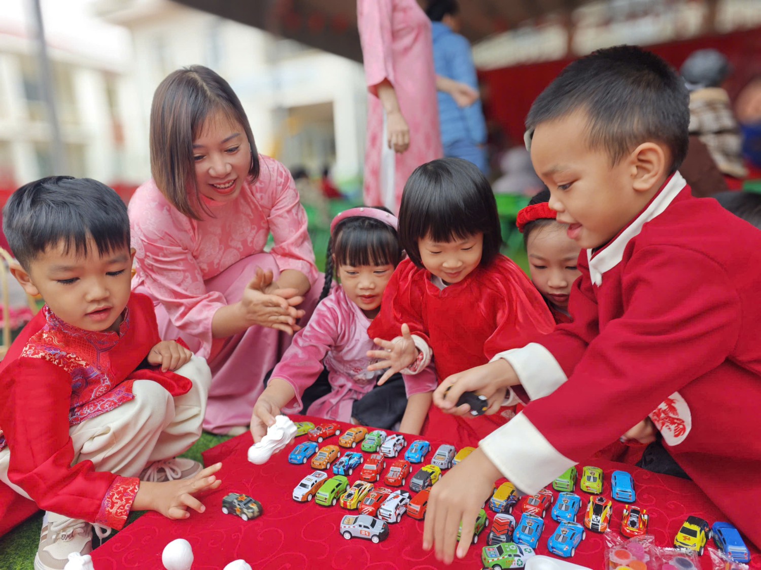 Lễ hội được tổ chức trong không gian rực rỡ sắc xuân với cờ hoa, câu đối đỏ, tiểu cảnh ngày Tết và các gian hàng trưng bày sản phẩm do cô và trò cùng thực hiện. Đây không chỉ là dịp để các bé vui chơi, trải nghiệm mà còn giúp trẻ hiểu thêm về ý nghĩa của Tết cổ truyền Việt Nam.
