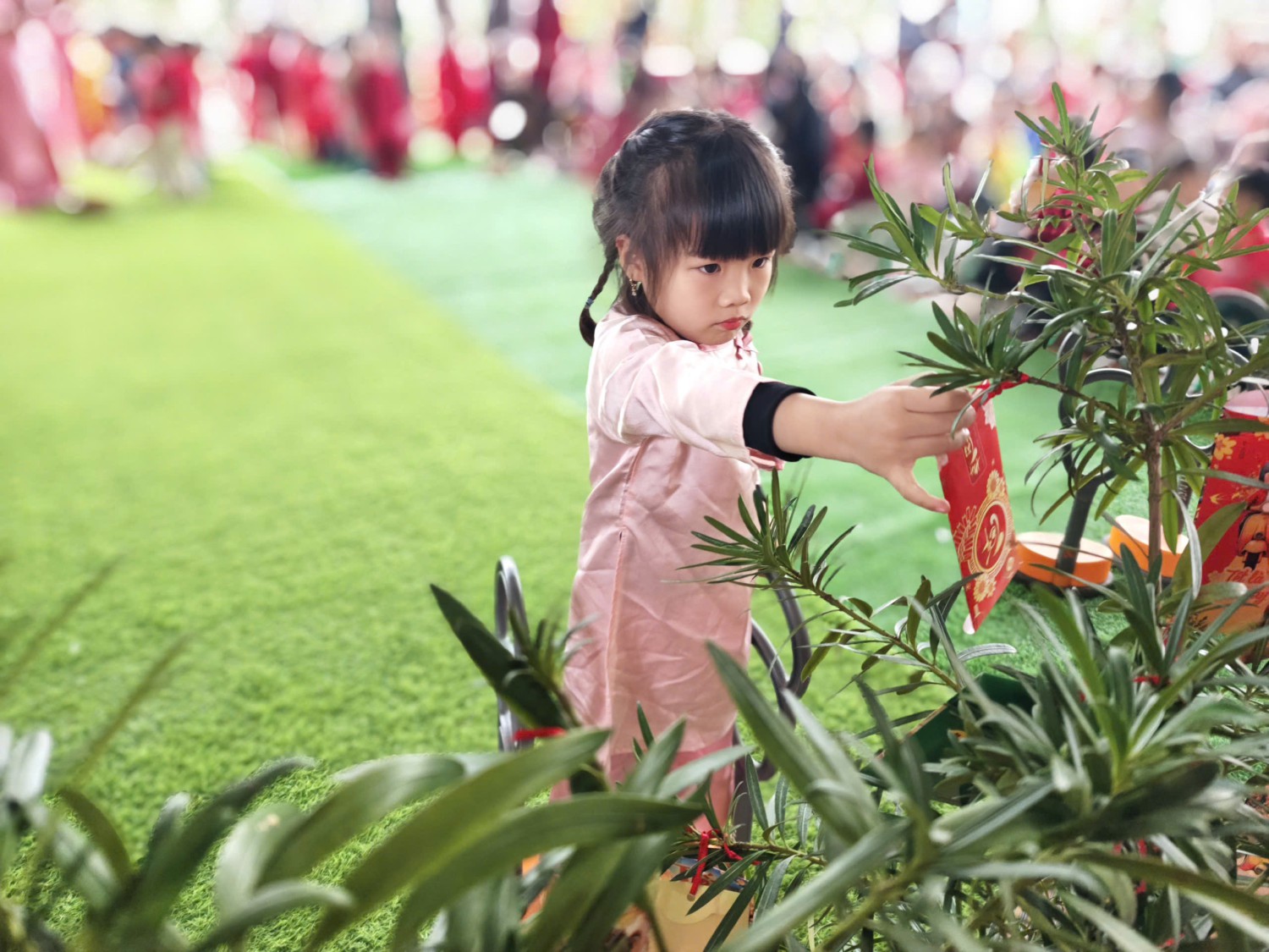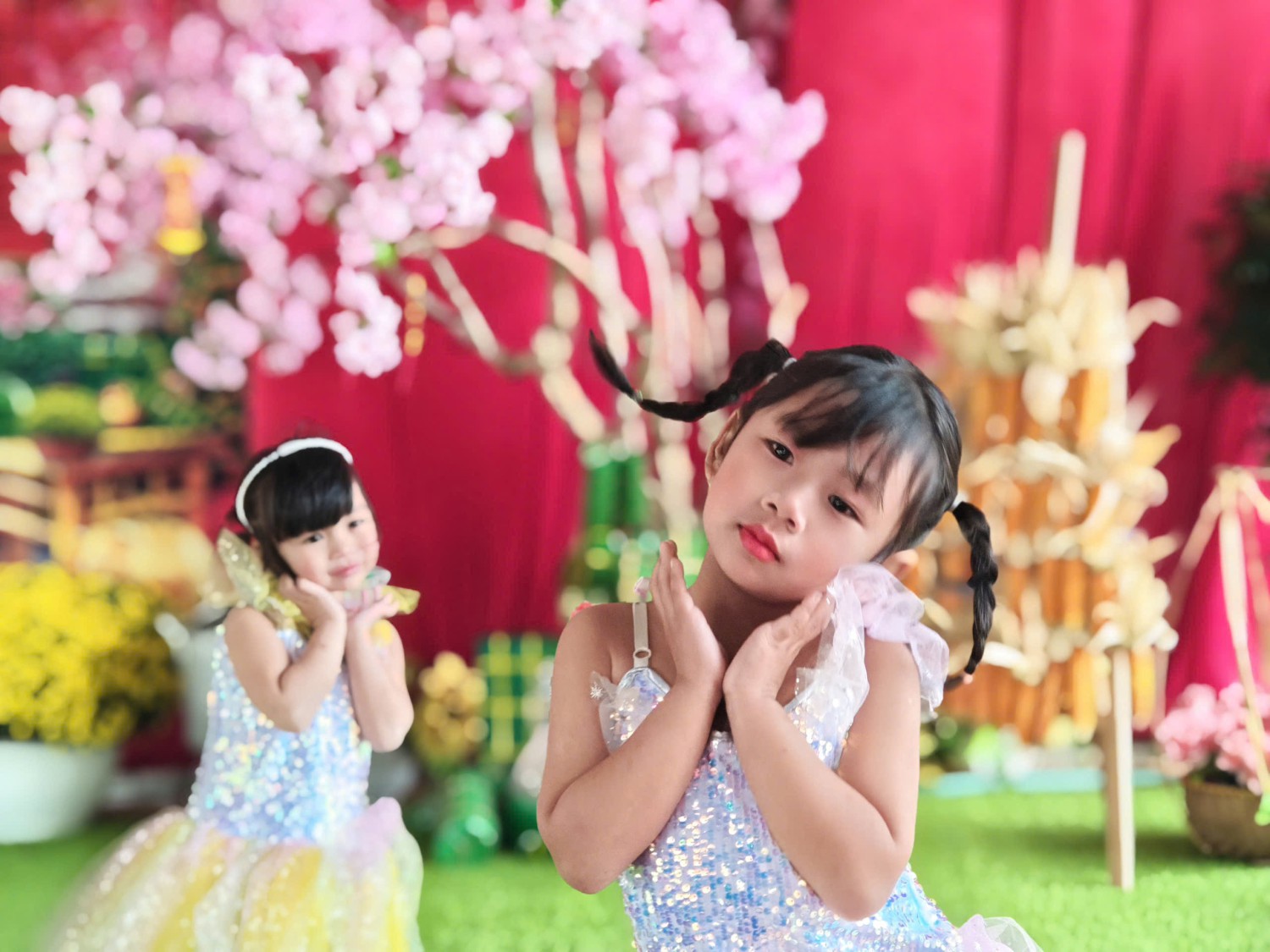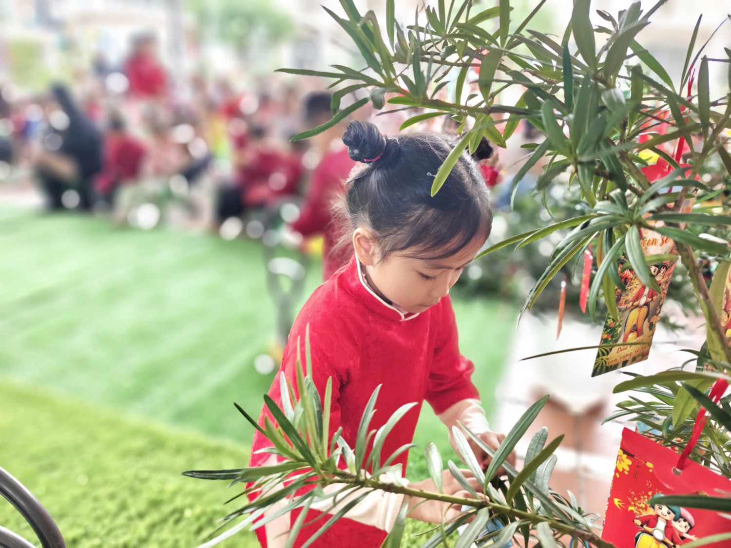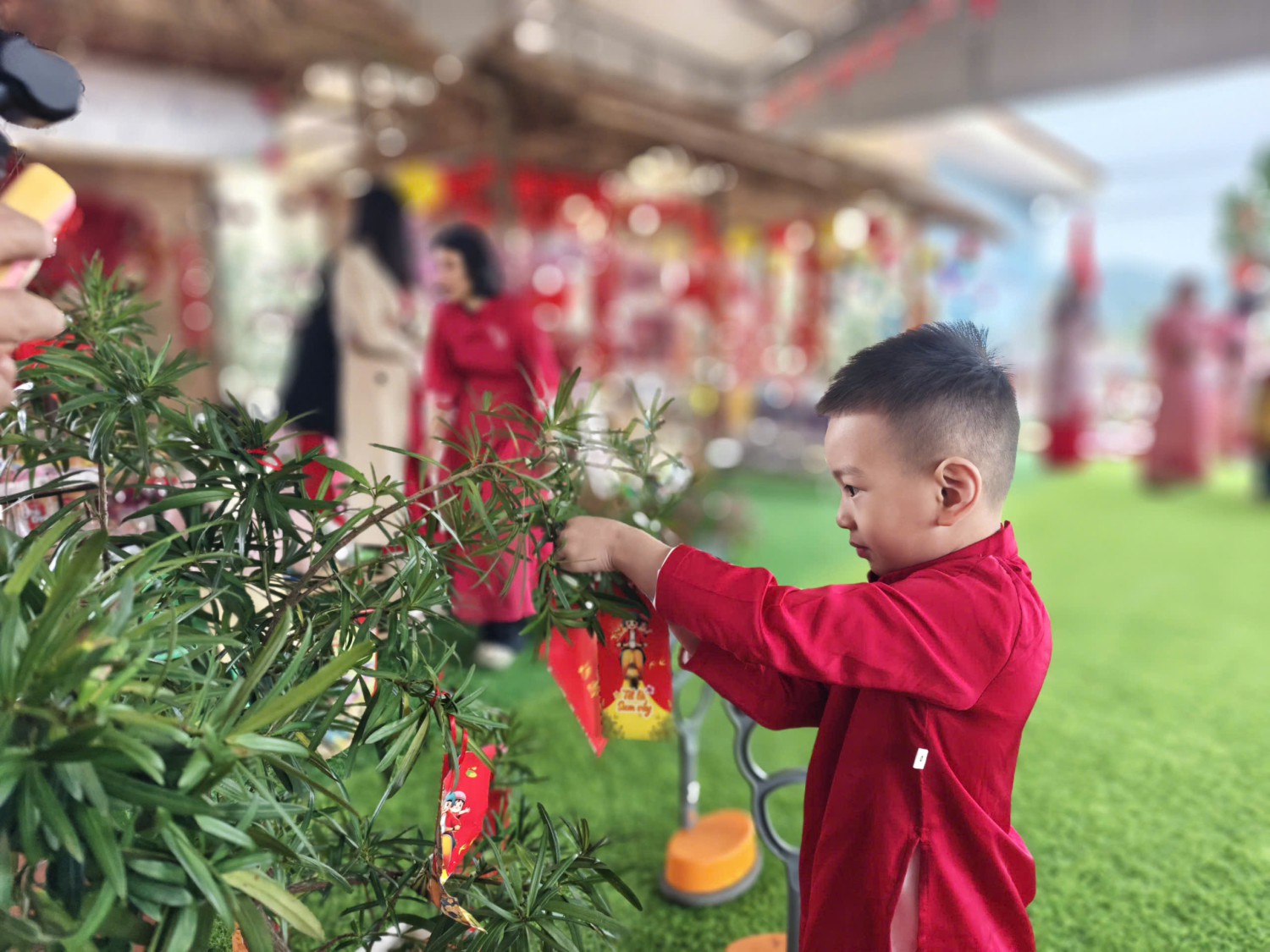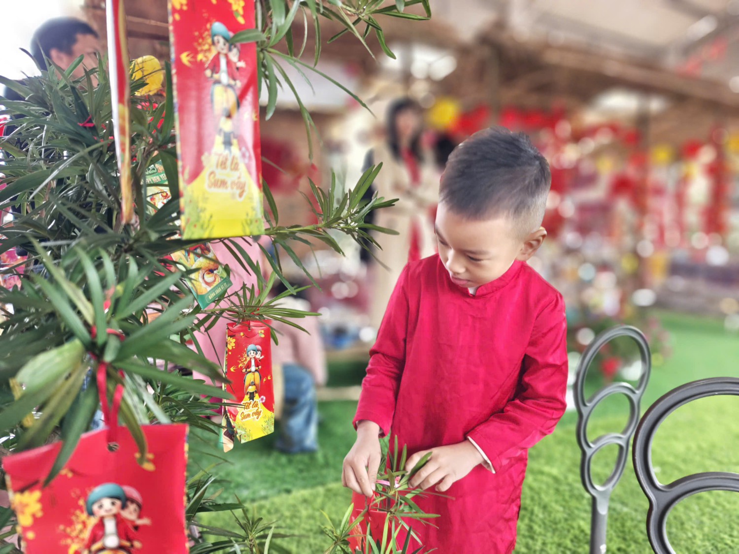 Lễ hội được tổ chức trong không gian rực rỡ sắc xuân với cờ hoa, câu đối đỏ, tiểu cảnh ngày Tết và các gian hàng trưng bày sản phẩm do cô và trò cùng thực hiện. Đây không chỉ là dịp để các bé vui chơi, trải nghiệm mà còn giúp trẻ hiểu thêm về ý nghĩa của Tết cổ truyền Việt Nam.