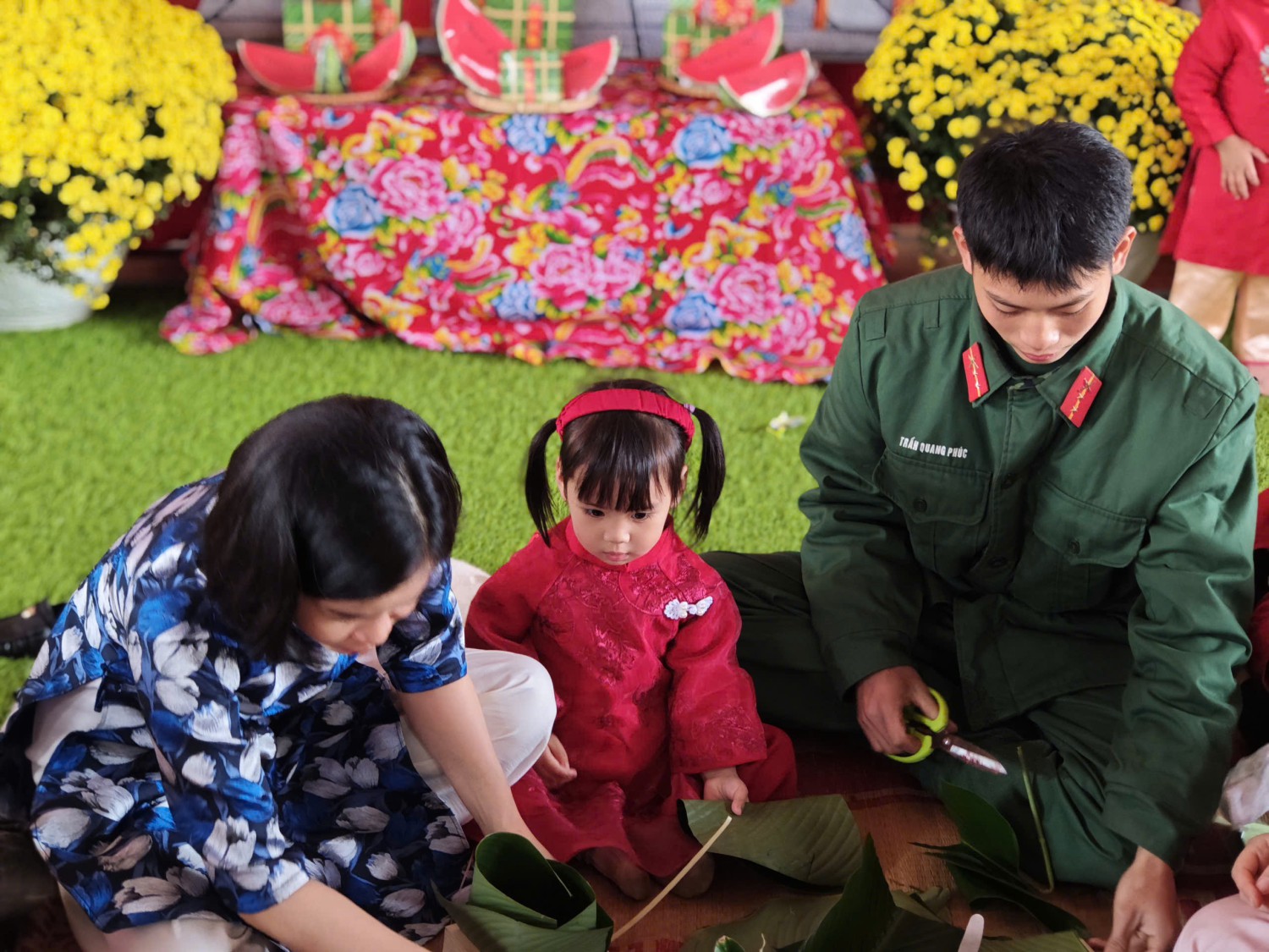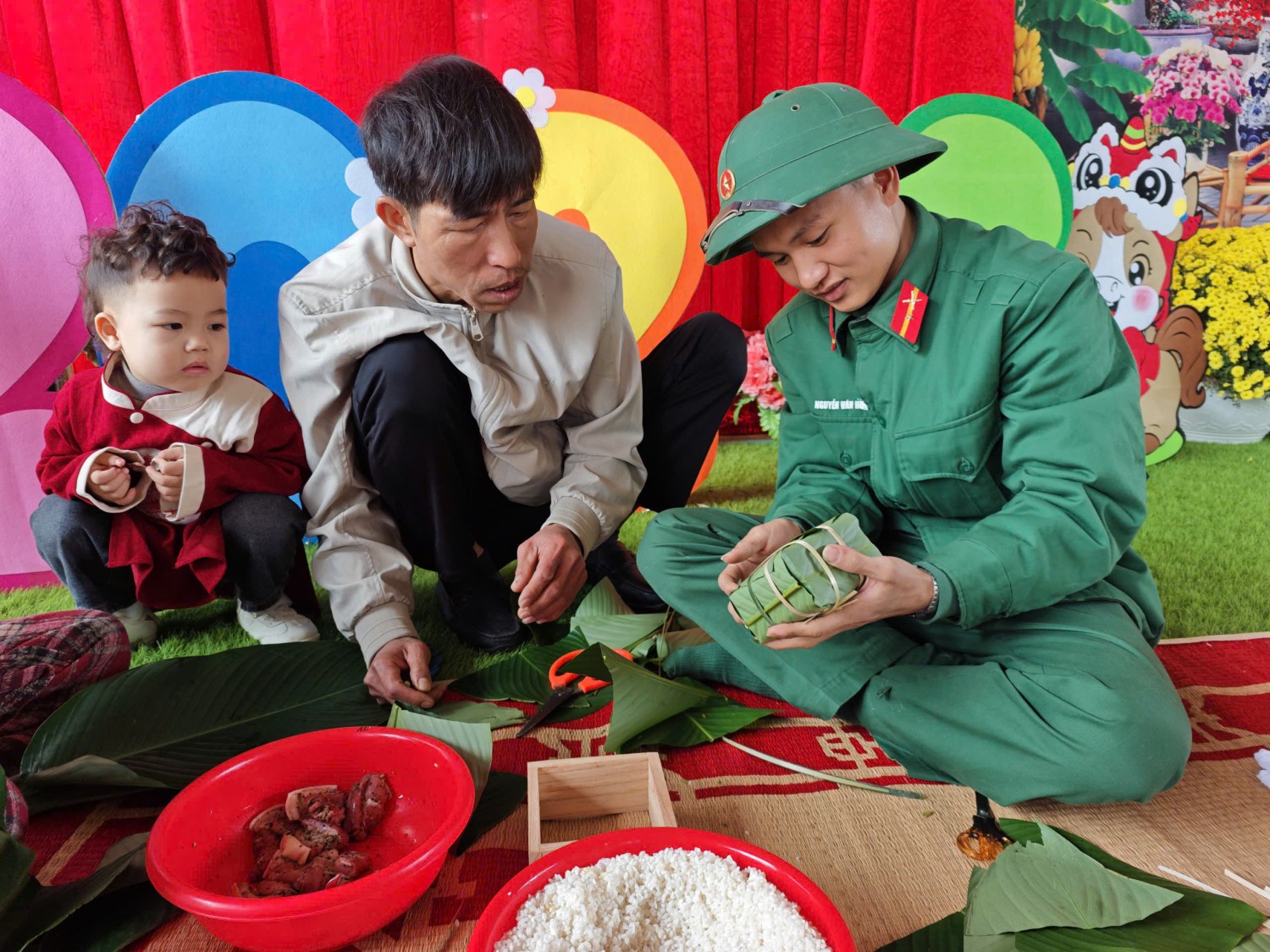 Trải nghiệm gói bánh chưng cùng các chú bồ đội
